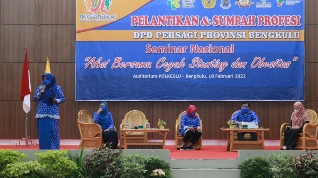 Setelah acara pelantikan dan angkat sumpah, kegiatan dilanjutkan dengan seminar nasional yang menghadirkan para pembicara ahli, antara lain: Ketua DPP PERSAGI Indonesia Kombes (Pol). Rudatin, SSt.MK, SKM, M.Si; Dosen UPN Veteran Jakarta yaitu Taufik Maryusman, S.Gz, M.Pd, M.Gizi; Ketua DPD PERSAGI Provinsi Bengkulu yaitu Emy Yuliantini, SKM, MPH; serta Dosen Politeknik Kesehatan Kementerian Kesehatan Bengkulu yaitu Ns. Yossi Utario, S.Kep, M.Kep, Sp.Kep.An.