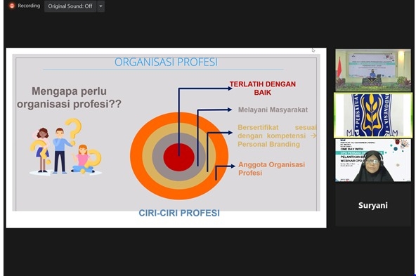 Materi sosialisasi KTA dibawakan oleh Bapak Taufik Maryusman, S.Gz, M.Pd, M.Gizi., kemudian dilanjutkan dengan materi CPD Online yang dibawakan oleh Bapak Dr. Syarief Darmawan, SST, M.Kes. Pada pukul 15.30 WIB, seluruh rangkaian acara telah selesai dan ditutup dengan sesi foto bersama secara daring melalui Zoom serta foto bersama panitia yang hadir secara luring.
