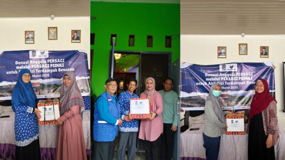 Bekasi, 8 Maret 2025 â Persatuan Ahli Gizi Indonesia (PERSAGI) telah menyalurkan bantuan donasi melalui program PERSAGI PEDULI kepada pengurus dan anggota yang terdampak banjir di wilayah Jakarta dan Bekasi. Penyerahan bantuan dilaksanakan di Aula UPTD Puskesmas Kelurahan Kranji, Kota Bekasi, berupa paket sembako dan makanan senilai Rp250.000 per orang sebagai wujud solidaritas sesama profesi.