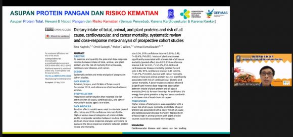 Kegiatan ini dihadiri oleh 60 orang peserta yang merupakan perwakilan dari masing-masing DPD PERSAGI, perwakilan DPP, dan perwakilan PP AsDI. Acara kemudian dilanjutkan dengan penyampaian materi oleh Bapak Nurfi Arfiansyah, SKM, M.ScPH. selaku narasumber pertama. Beliau membawakan materi seputar âPeran Diet Nabati (Plant-Based Diet) dalam Mendukung Kesehatan yang Optimalâ yang membahas kecenderungan penyakit dan faktor risikonya di level global & nasional, asupan protein hewani vs nabati terhadap risiko mortalitas, serta prinsip sustainable diets.